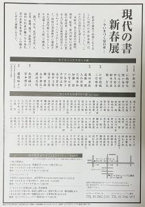 Home 毎日書道会関係 2026現代の書新春展-今いきづく墨の華ー ⇒終了 2026現代の書新春展-今いきづく墨の華ー ⇒終了 2025.12.15 毎日書道会関係 2026現代の書新春展-今いきづく墨の華ー 会期:2026年1月4日(日)~9日(金) 会場:セイコーハウスホール&セントラル会場100人展(午・申・戌・子・寅・辰年生まれから選抜) 時間:セイコーハウスホール 11:00~19:00 (最終日は17:00閉場) セントラルミュージアム銀座 10:00~18:00 (最終日は17:00閉場) 主催:毎日新聞社、毎日書道会
