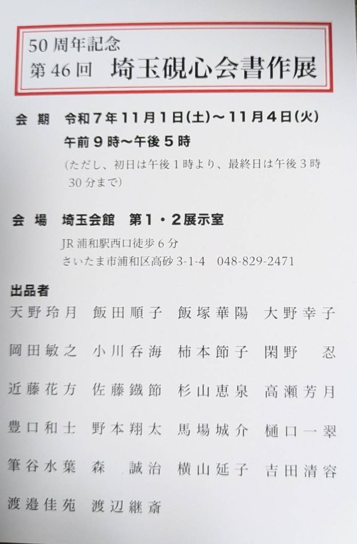 埼玉硯心展は、東京学芸大学書道科の卒業生で埼玉県在住在勤の方で構成されています。