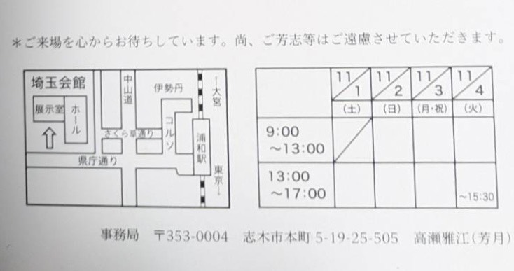時間:9:00~17:00(初日13:00~ 最終日~15:30)