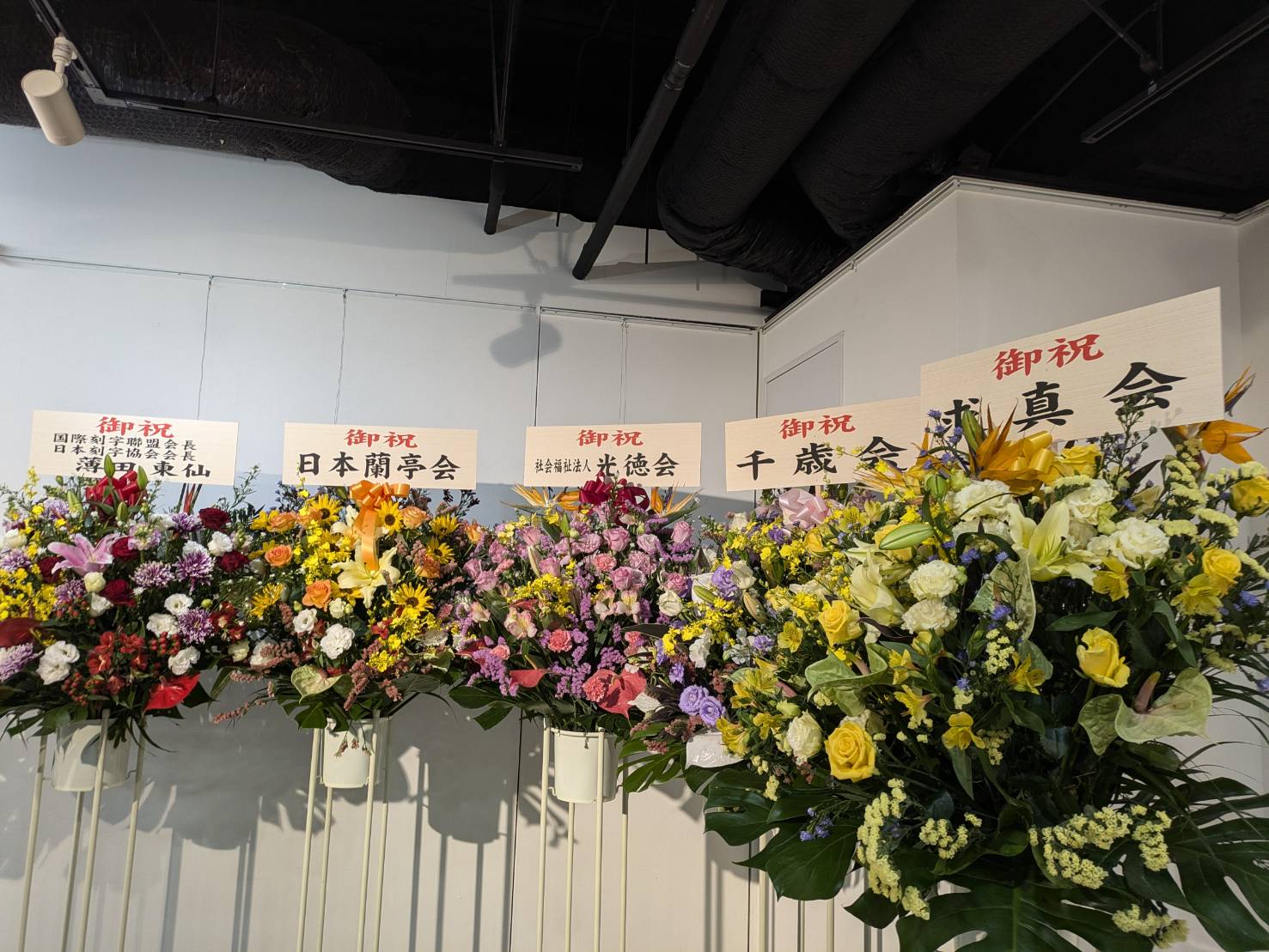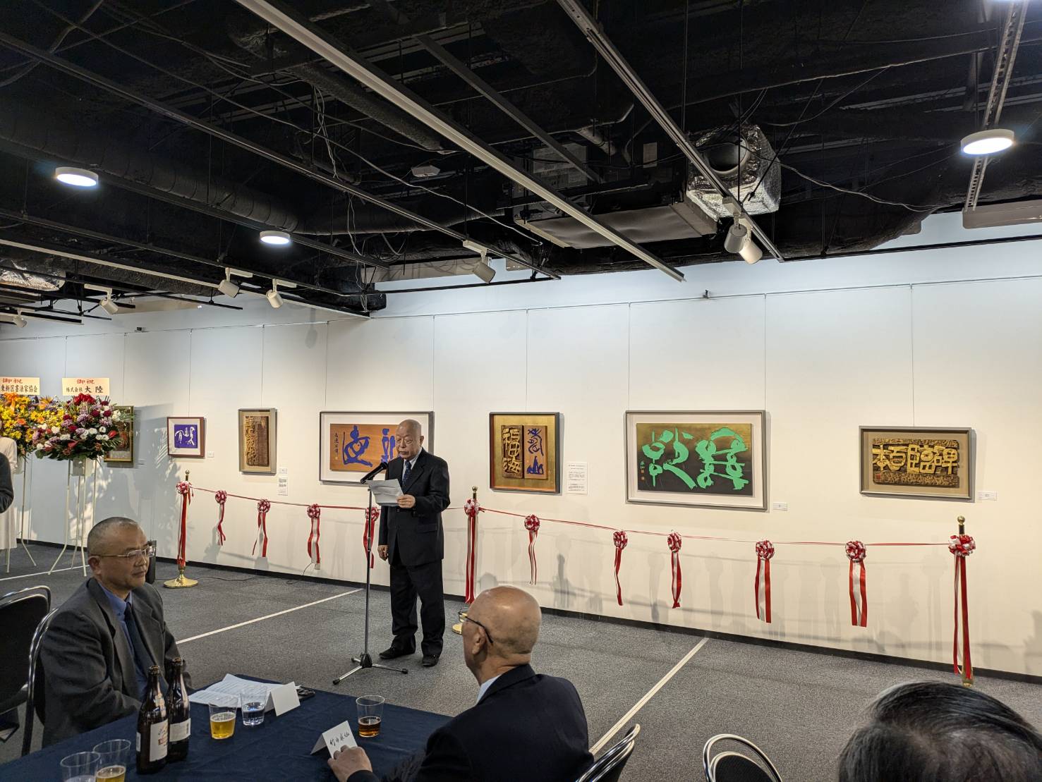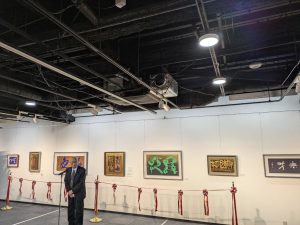 日本からは日本刻字協会副会長の齋藤瑞仙がご祝辞、他にも多くの来賓からのご祝詞と両先生ご挨拶ののち、盛大にテープカットが行われ、展覧会の開会となりました。