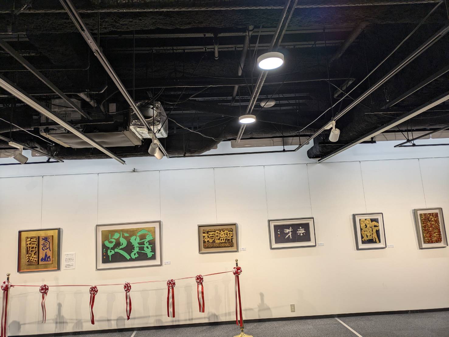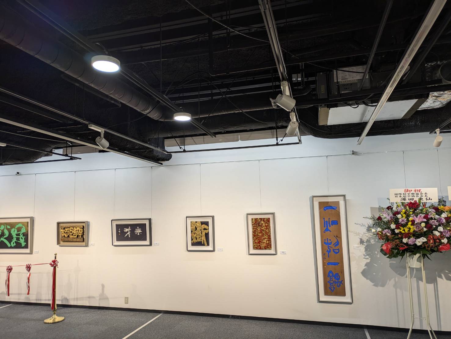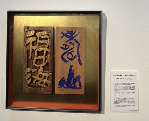 展覧会場は中央にお二人の合作を展示、左右をわけたそれぞれの壁面にお二人の作品が展示され、日中の刻字の対比を楽しむようになっていました。