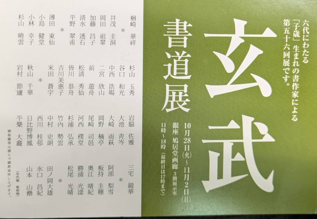 2025年10月28日〜11月2日まで、銀座鳩居堂画廊にて「玄武書道展」が開催されました。
